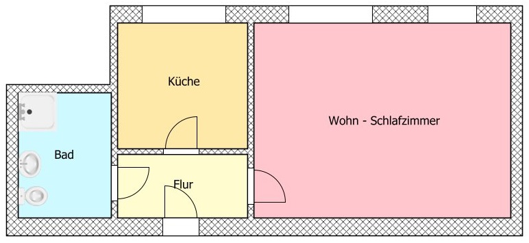 Über den kleinen Flur erreicht man den großzügigen Wohn - und Schlafbereich, die Küche sowie das Bad mit Dusche.
